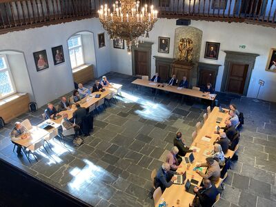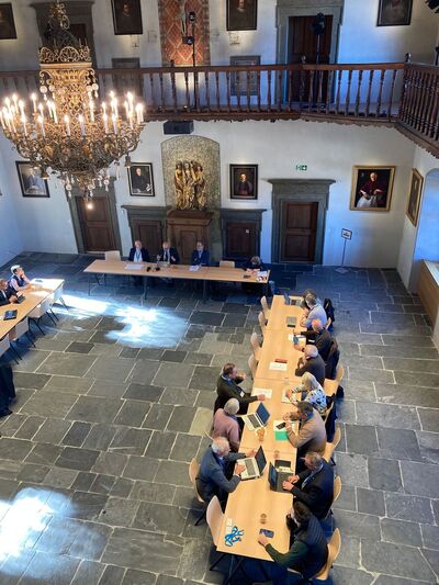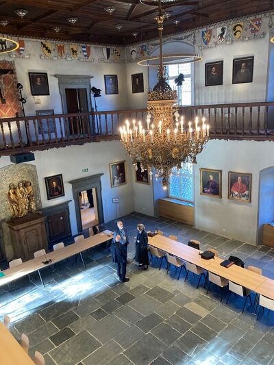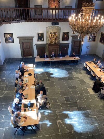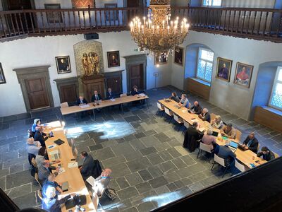 Die zweite Plenarversammlung der Arbeitsgemeinschaft christlicher Kirchen in der Schweiz (AGCK) trifft sich heute im bischöflichen Schloss in Chur. Auf Einladung von Bischof Joseph Maria sind viele der Mitglieder aus den verschiedenen christlichen Kirchen in der Schweiz zum ersten Mal im Schloss. Das Staunen ist gross. Trotz laufenden Renovationsarbeiten versprüht der mittelalterliche Rittersaal und das vorgelagerte Rokoko-Treppenhaus einen atemberaubenden Charme. Selbst die Gäste aus St. Gallen sind beeindruckt. Und die sind notabene im Stiftsbezirk St. Gallen in einem UNESCO-Weltkulturerbe, das als eines der bedeutendsten Kulturzentren des Abendlandes gilt, daheim.