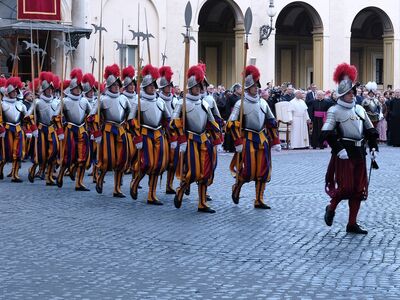Nun bleiben noch einige Stunden, dann ist es soweit: um 17 Uhr werden die neuen Schweizer Gardisten, die wohl am längsten auf ihren grossen Tag warten mussten, vereidigt. Da das traditionelle Sacco di Roma just in die Sedisvakanz fiel wurde die ganze Zeremonie auf Pause gestellt. Erst musste ein neuer Papst gewählt werden, dem die jüngsten Gardisten ihre Treue schören konnten. Nun haben sie einen - und der kommt auch gleich persönlich vorbei, um zu hören, was sie geloben: Treue bis in den Tod. Komme was da wolle.