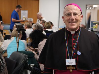 Kein Dutzend Pferde würde Bischof Joseph Maria nach dem langen Anreisetag, der ersten Eröffnungsmesse und zahlreichen Selfies davon abhalten, im Accueil vorbei zu gehen und alle zu begrüssen.