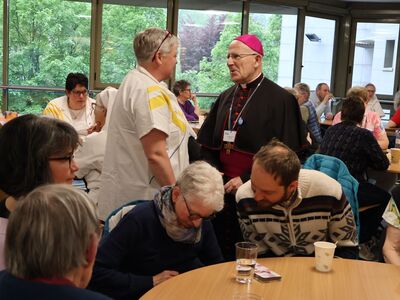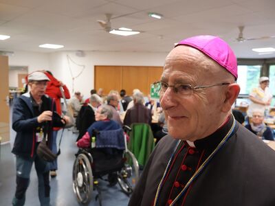 Die Wiedersehensfreude ist allen ins Gesicht geschrieben. "Es ist einfach immer anders, wenn er hier ist", sagt eine langjährige Helfende. Auf die Rückfrage, was den anders sei, antwortete sie: "So genau kann ich das nicht sagen." Die anderen seien ja auch immer ganz nett und lieb. Sein Charisma und insbesondere die Erinnerung an seine Zeit als Spitalseelsorger lassen Bischof Joseph Maria zur Hochform auflaufen. In Lourdes ist er in seinem Element, definitiv.