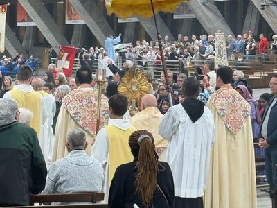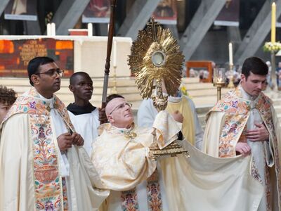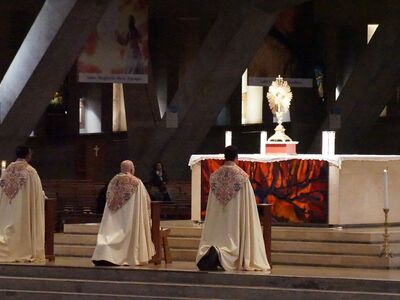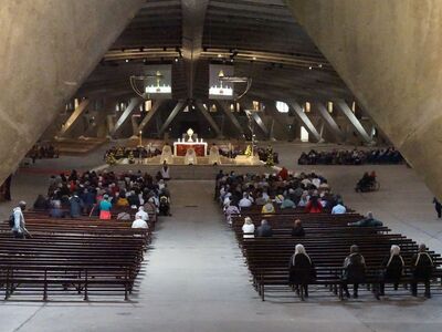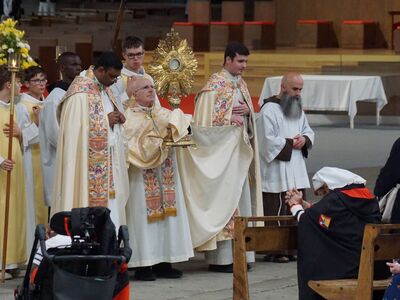 Eucharistische Prozession in der unterirdischen Pius-Basilika