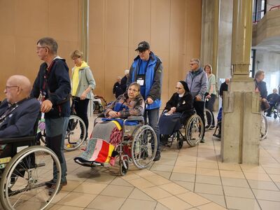 Getragen vom Glauben, gestärkt von der Gnade der Sakramente können wir dann unsererseits Quelle der Zuversicht und des Trostes, des Heils und der Hoffnung für viele andere sein. Unser heutiges Gebet hier sollte ein Gebetsbund sein: Ein Gebet nicht nur für die hier Anwesenden, sondern für alle Leidenden, für alle Menschen mit Behinderungen in der Schweiz, in der ganzen Welt. Der Hauptmann des Evangeliums ist ein wunderbares Beispiel. Er bat Jesus um Hilfe nicht für sich selbst, sondern für seinen kranken Diener. Schliesslich lobt Jesus den Glauben dieses Menschen, der nicht um eine Hilfe für sich selbst, sondern für jemand anders bat. In diesem Sinn spreche ich von einem Bund des Glaubens. Ich bin überzeugt, dass jeder und jede von uns nicht mit dem Gedanken, was er oder sie braucht da ist, sondern voll Mitgefühl für das Leiden, für die Gebrechen der anderen die da sind, mit dem Herzen verbunden mit allen Leidenden in der Welt.