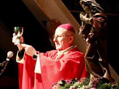 Tutto ciò che è tecnica umana deve essere fatto bene e coordinato con precisione. Tuttavia, più importante di tutti gli sforzi umani è la protezione e l'assistenza di Dio. Per questo motivo è molto importante e giusto che oggi celebriamo l'Eucaristia qui, in mezzo queste rocce alpine, e che imploriamo la benedizione di Dio per intercessione di Santa Barbara. Lei è una potente protettrice di tutto ciò che accade qui. Possa lei proteggervi sempre.