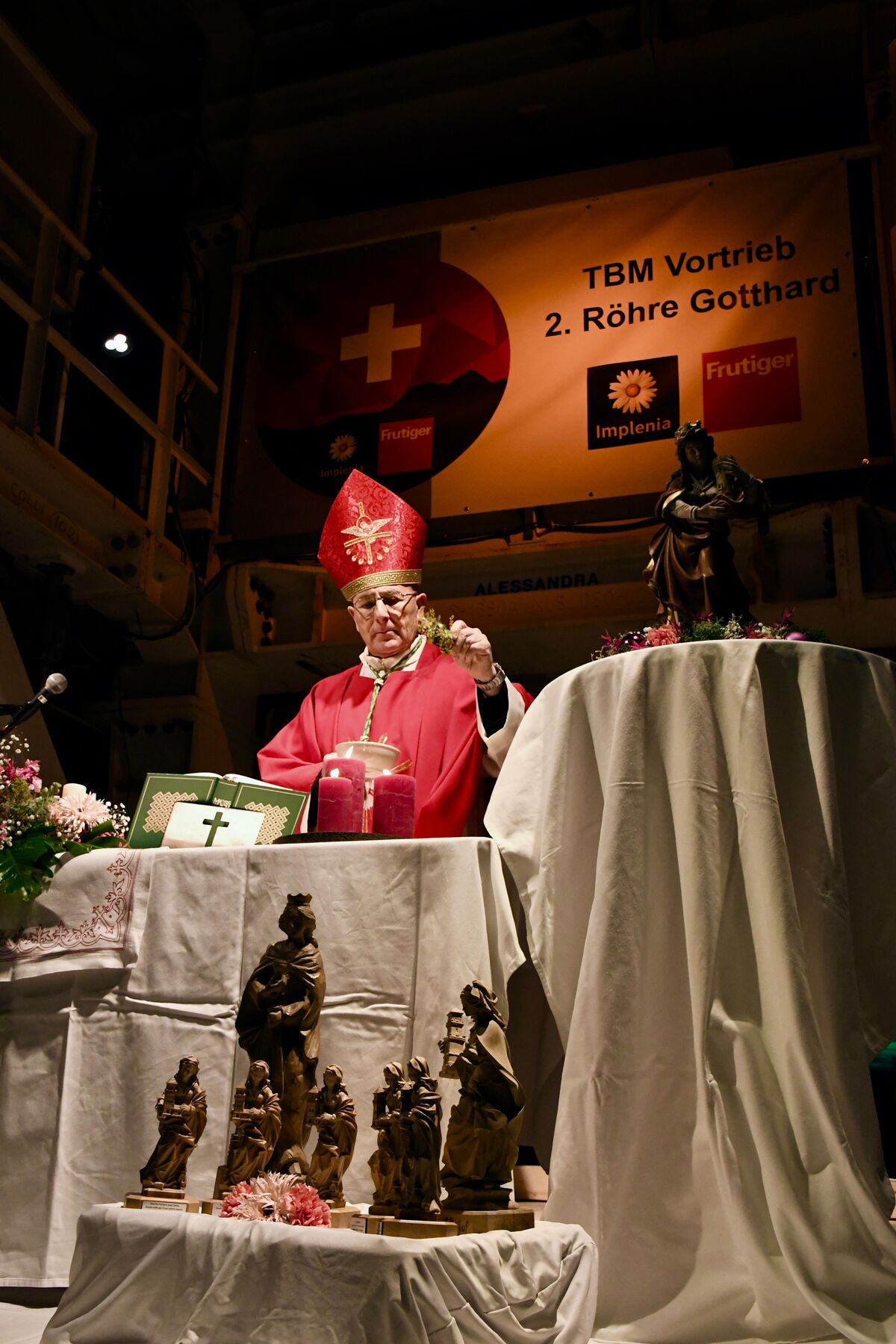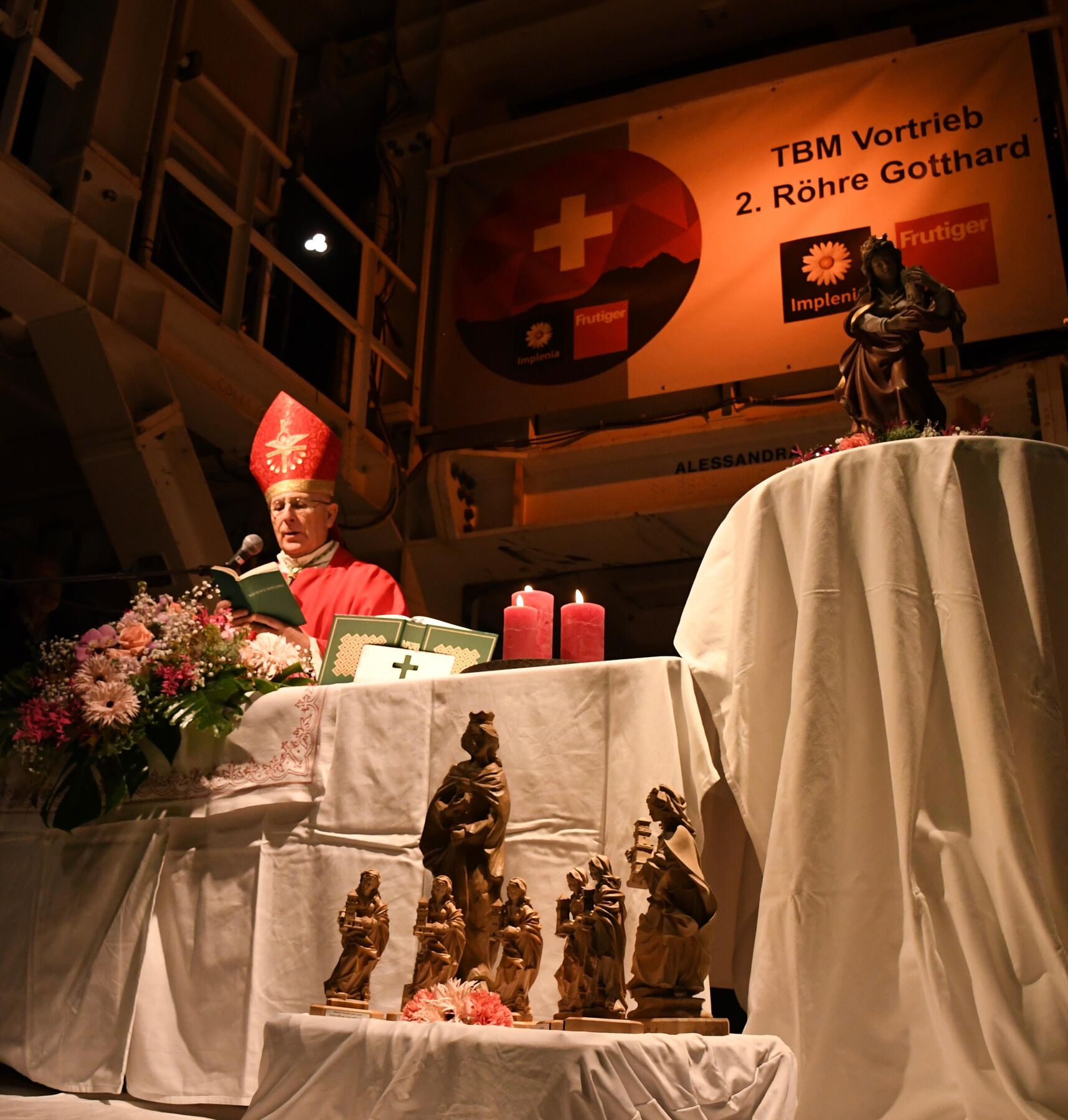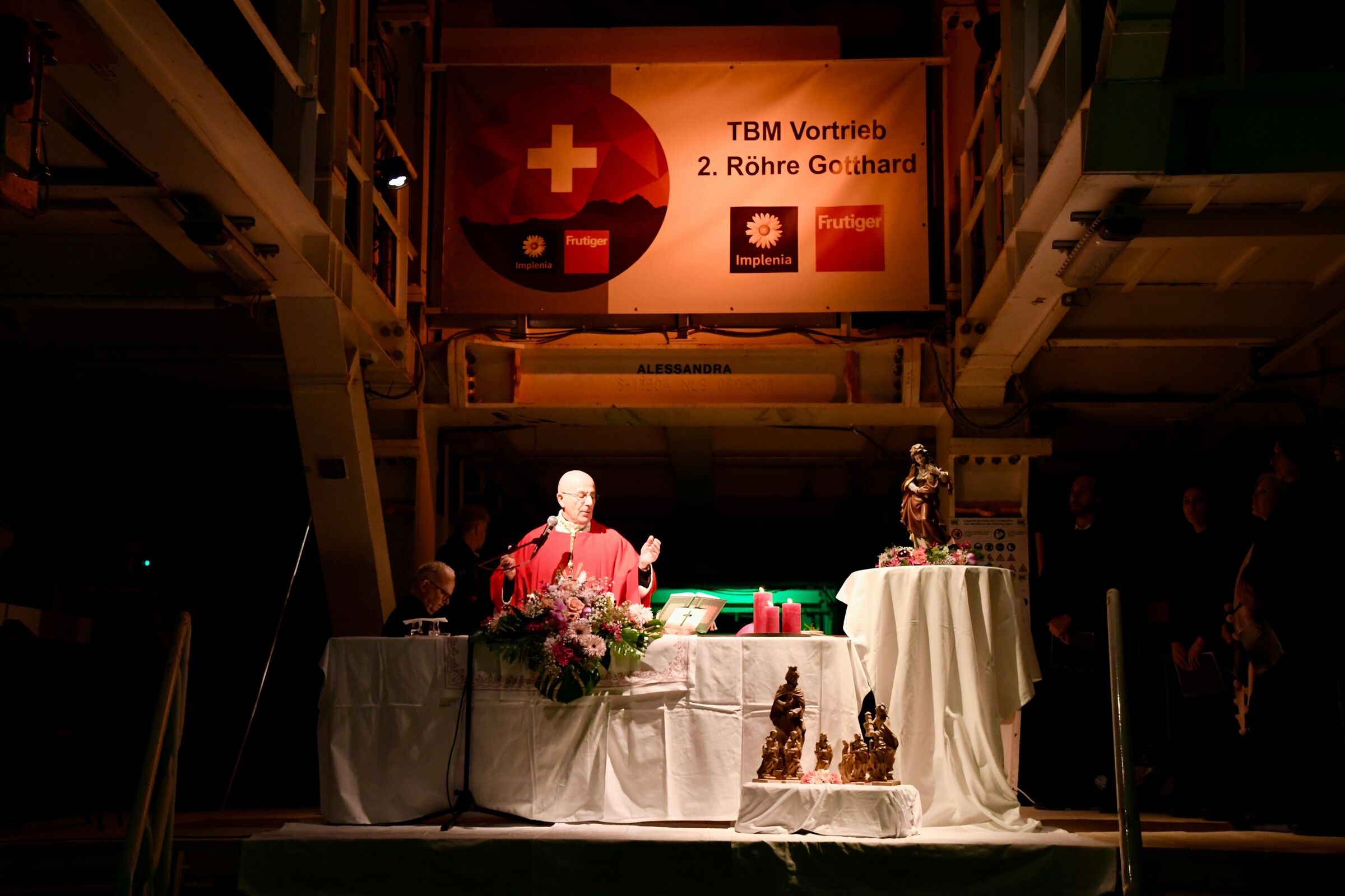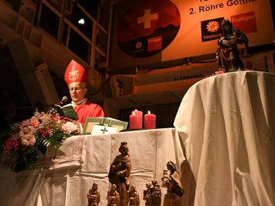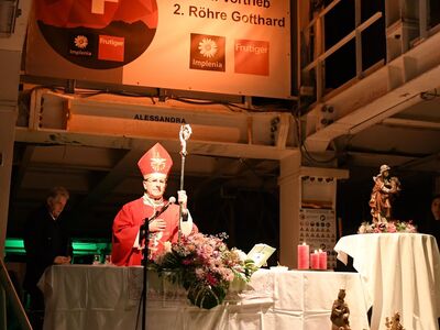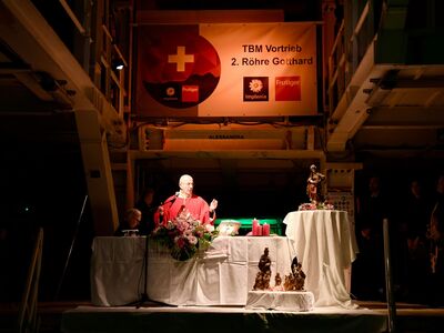 Wie einige schon gesehen haben, war ich vor wenigen Wochen bereits hier und habe für dieses gewagte, grossartige Bauwerk wirklich Feuer gefangen. Umso mehr freue ich mich, heute hier zu Ehren der hl. Barbara, als Patronin von euch und allen Tunnelbauern, mit euch allen die hl. Messe feiern zu dürfen.