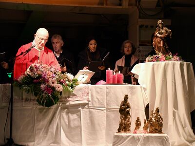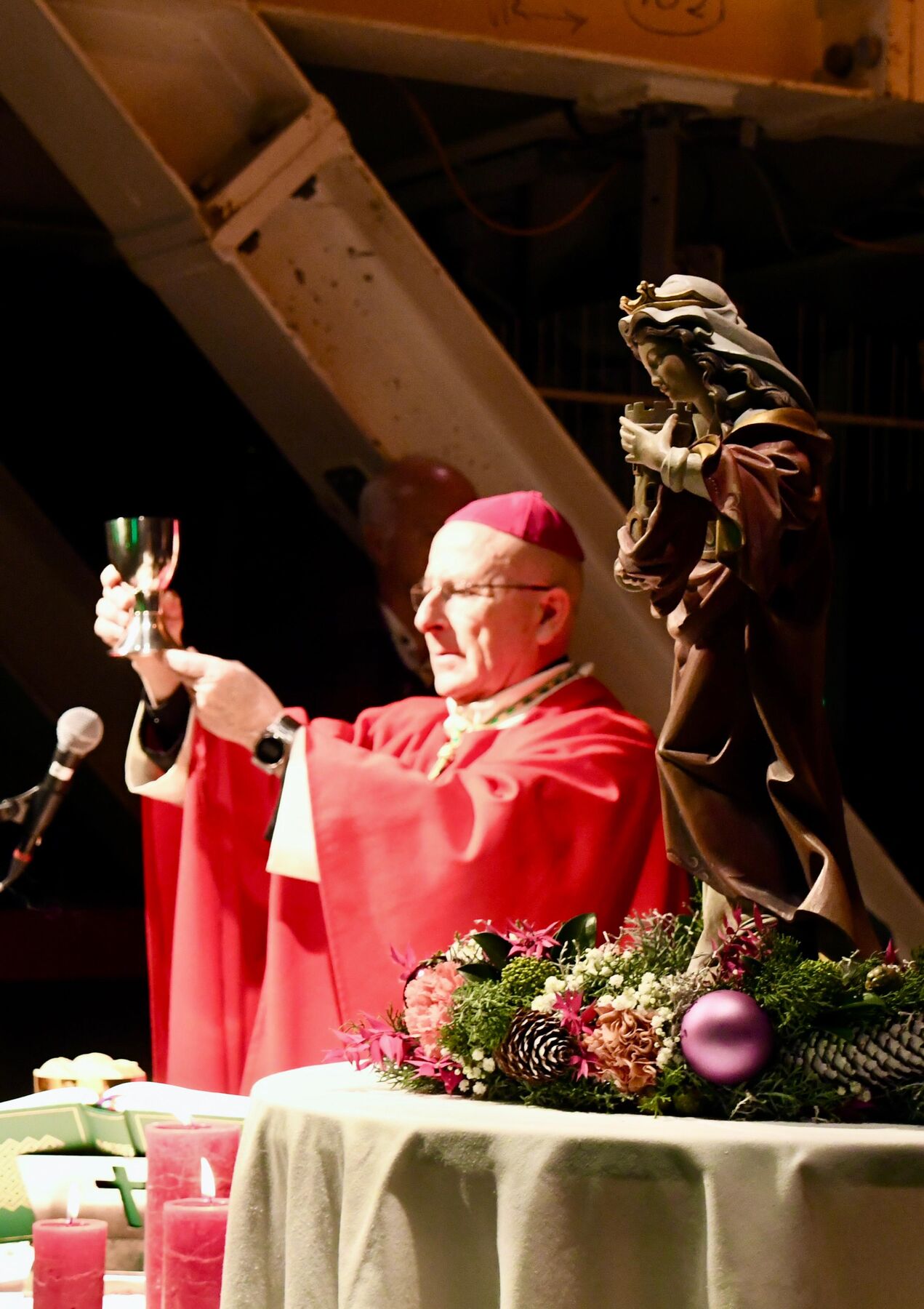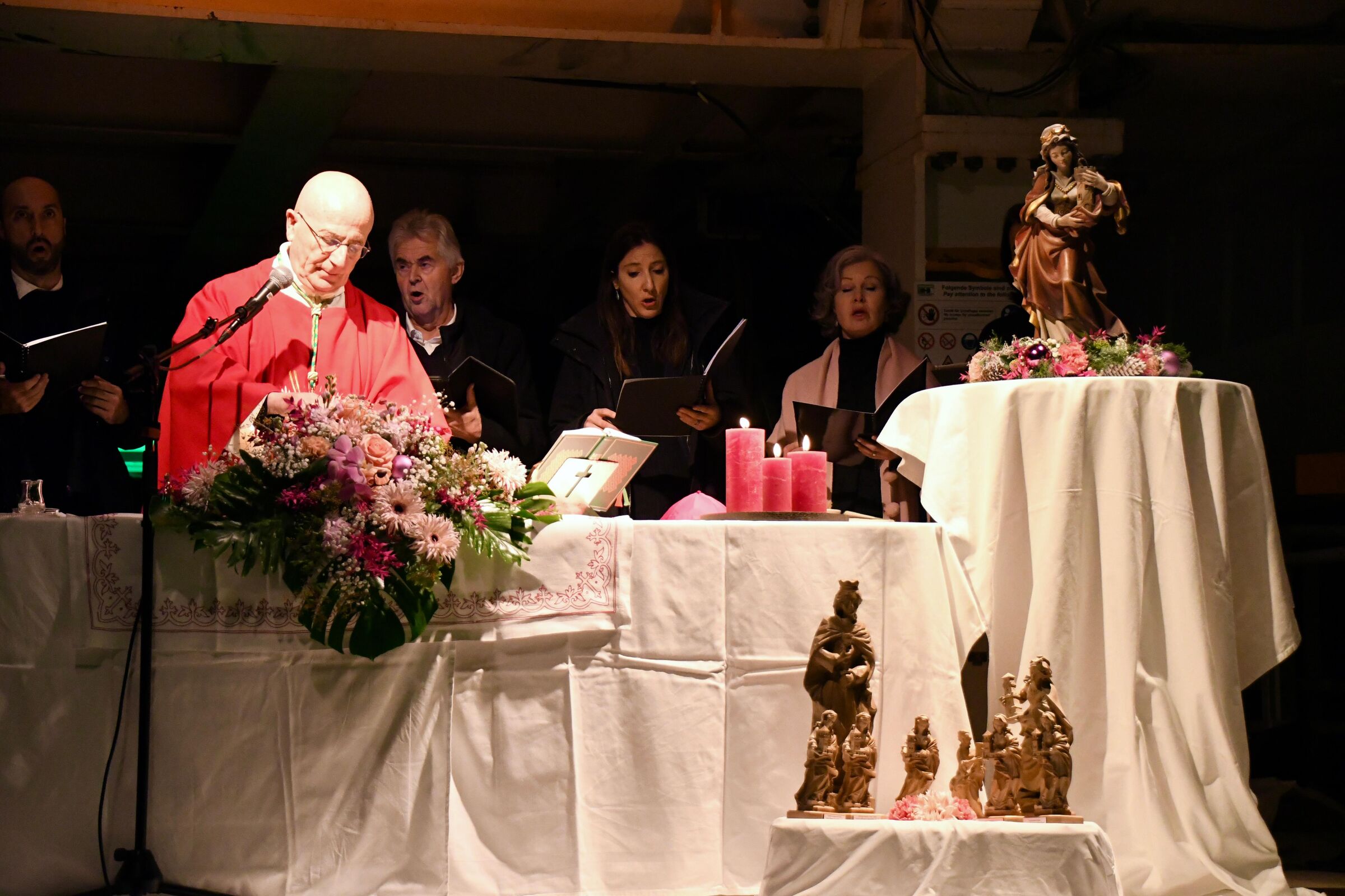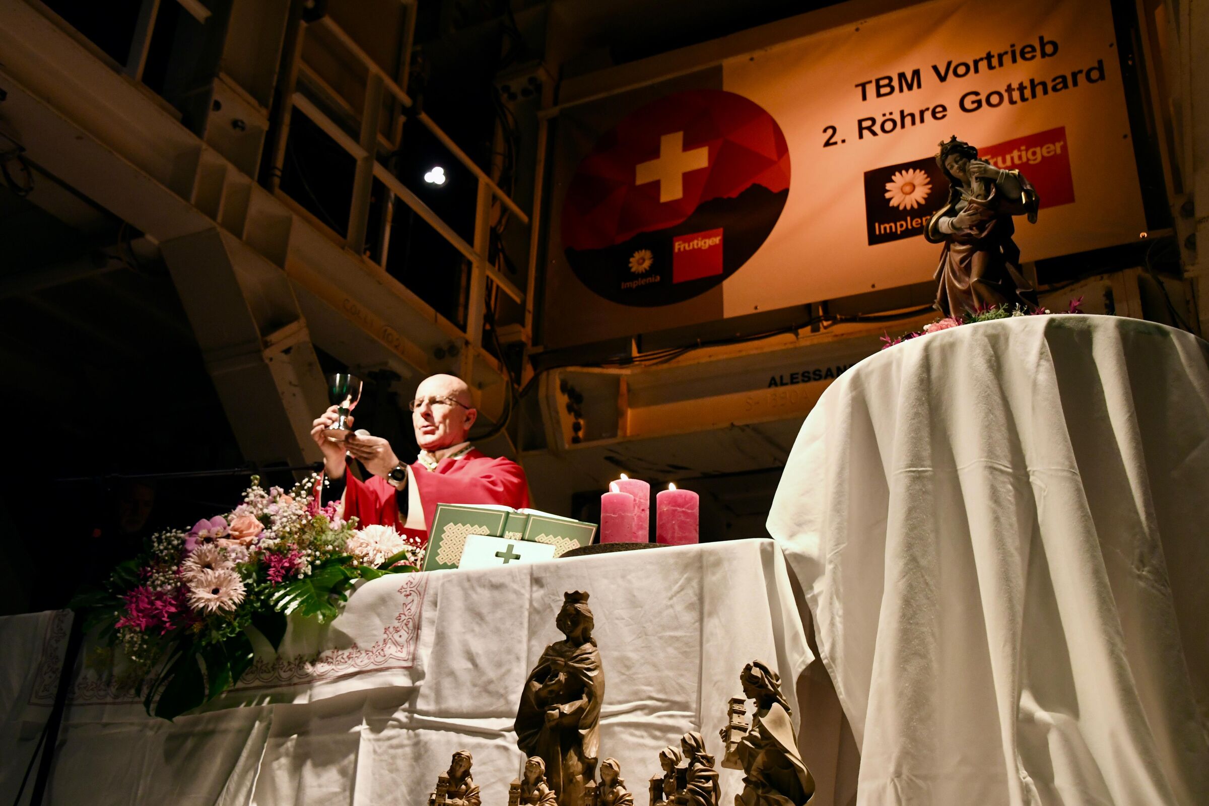 Wie einige schon gesehen haben, war ich vor wenigen Wochen bereits hier und habe für dieses gewagte, grossartige Bauwerk wirklich Feuer gefangen. Umso mehr freue ich mich, heute hier zu Ehren der hl. Barbara, als Patronin von euch und allen Tunnelbauern, mit euch allen die hl. Messe feiern zu dürfen.