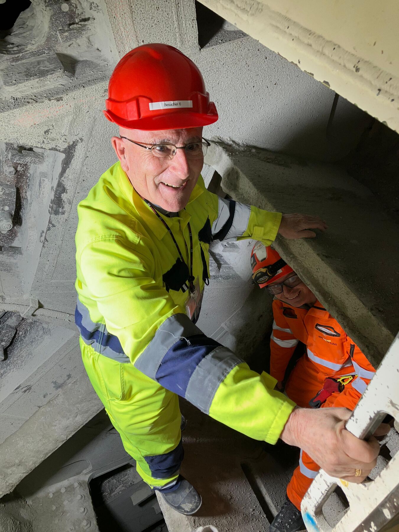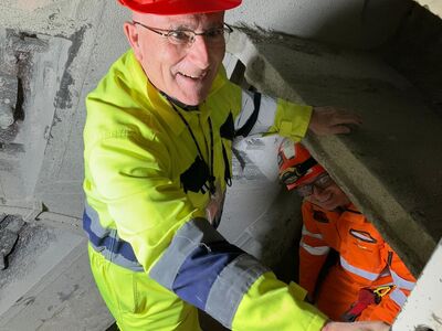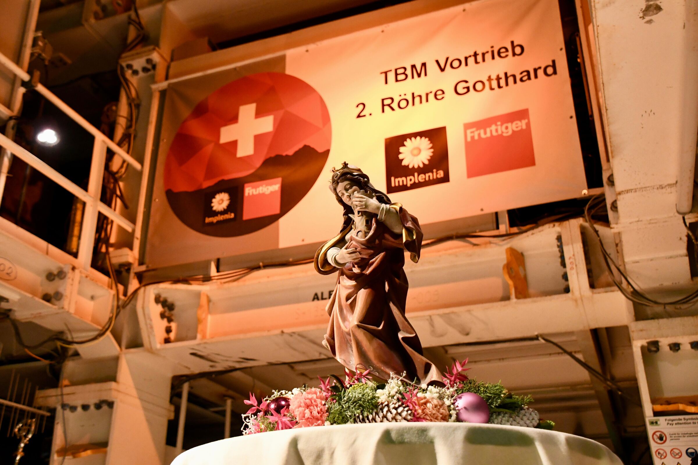 Rein schon von den Dimensionen her würde ich behaupten, dass ihr hier eine prächtige Kathedrale baut. In Kathedralen finden Abertausende von Menschen im Verlaufe der Jahre einen sicheren Ort der Geborgenheit und der Gottesnähe. Durch diese Tunnels werden im Verlauf der Jahrzehnte und Jahrhunderte – so hoffen wir – eine noch viel grössere Zahl von Menschen durchfahren. Deswegen, wenn wir heute beten, dass die hl. Barbara euch beschützt und Gott mit seinem Segen ermöglicht, dass alle, die hier arbeiten, heil bleiben und keinen Unfall erleben, umso mehr sollten wir für alle Menschen beten, die hier durchfahren und hoffen werden, eine sichere Fahrt zu erleben und gesund das Ziel ihrer Reise zu erreichen.