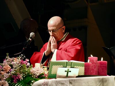 In questa santa messa preghiamo anche per tutti i vostri cari defunti e per tutti coloro che hanno rischiato la vita nelle miniere e talvolta l'hanno persa.