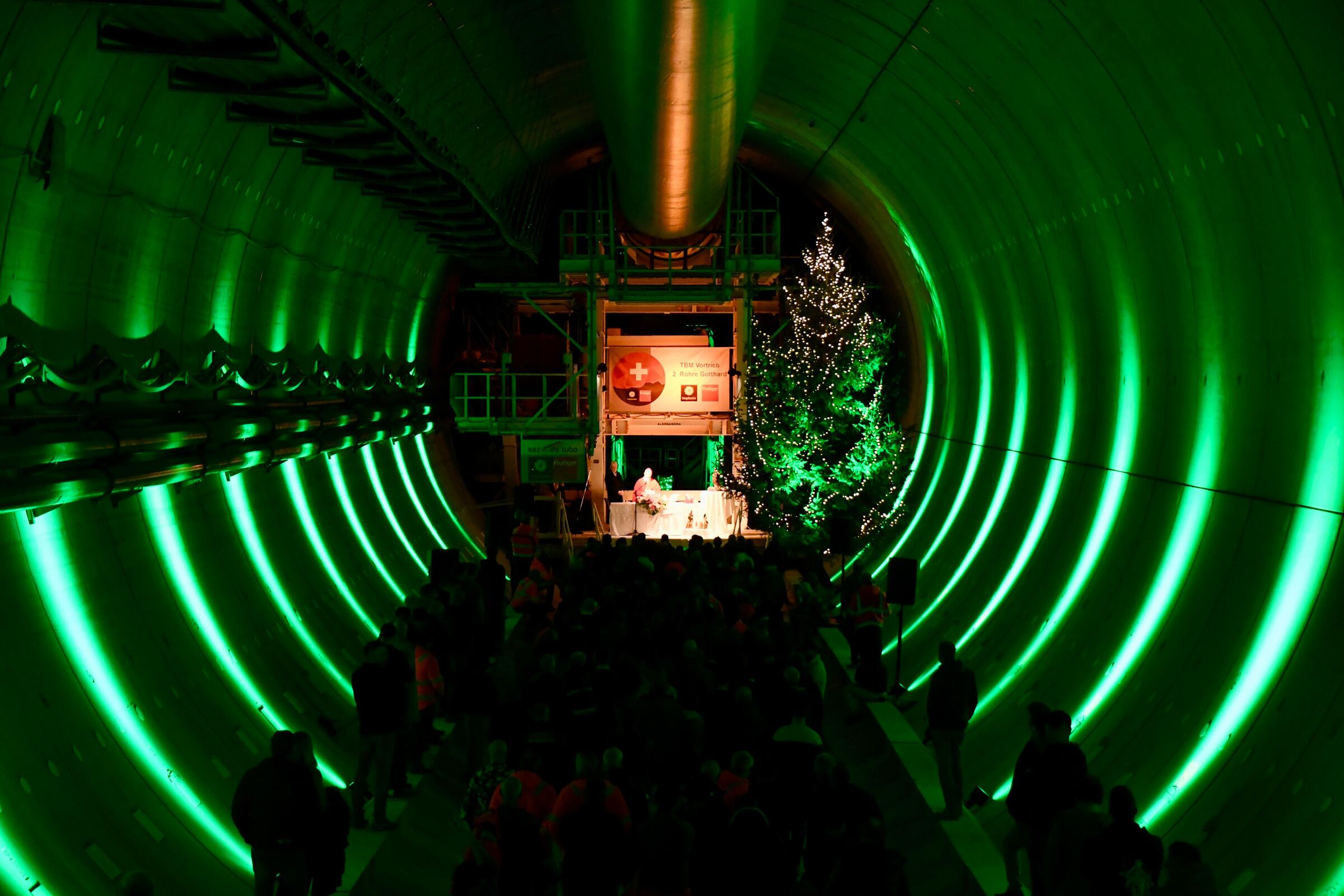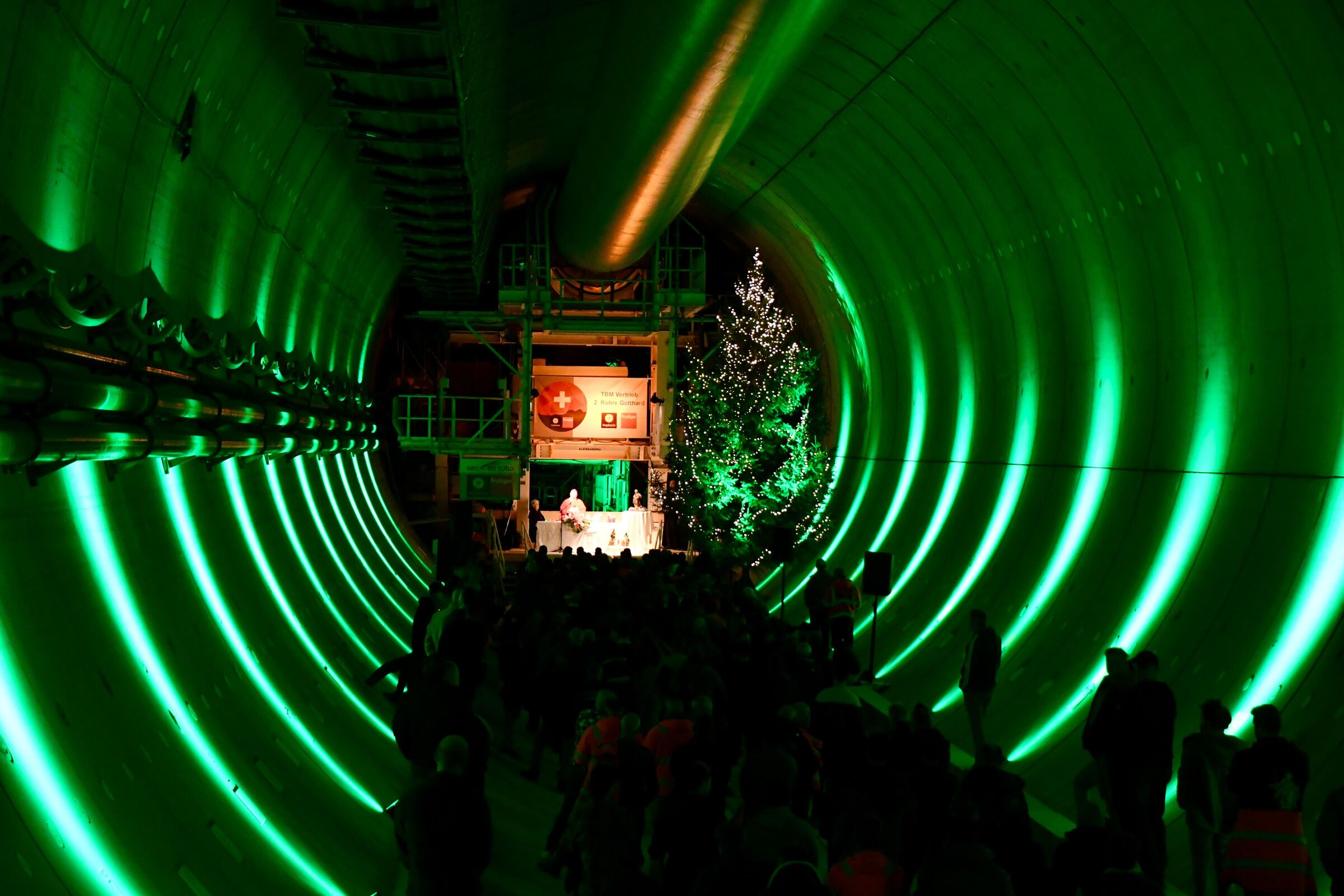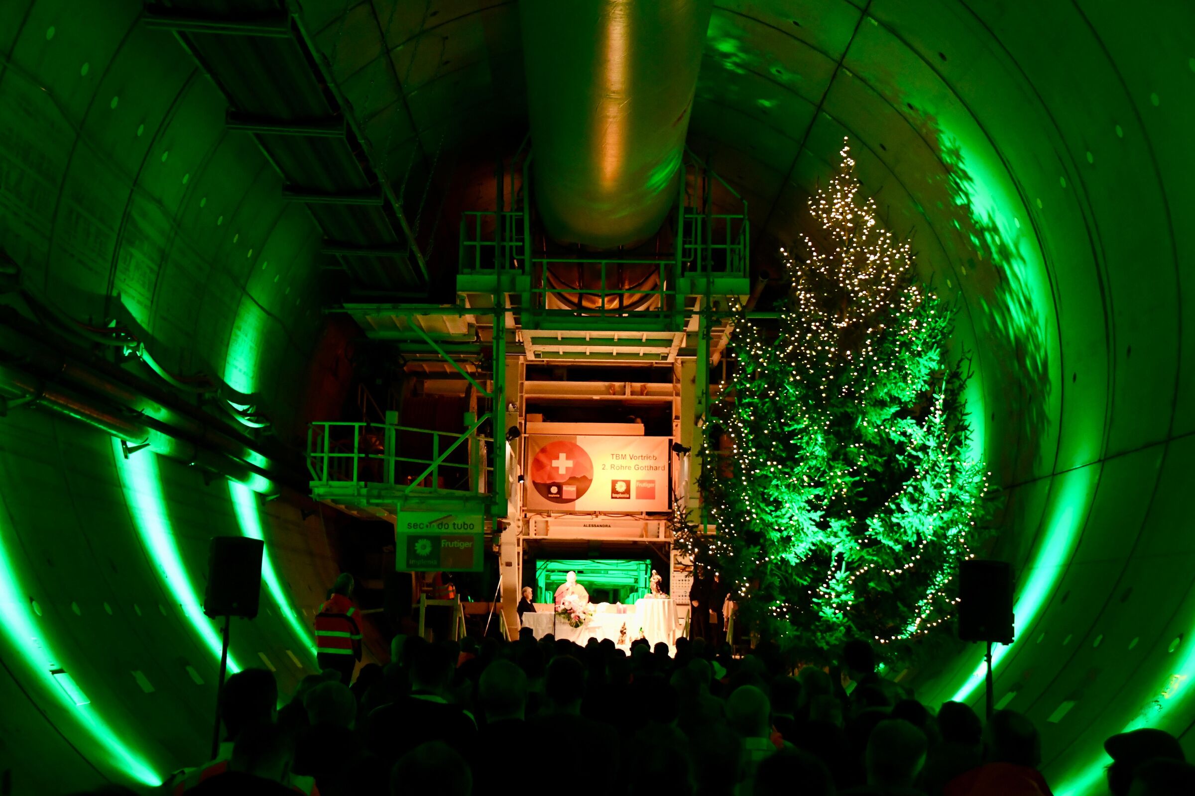 Alle, die hier wirken und hier arbeiten, haben verschiedene Motivationen. Es ist eine Arbeitsstelle und ein Ort, um den Lebensunterhalt zu sichern. Es ist ein gewagtes Projekt, um sich beruflich und auch künstlerisch zu entwickeln und zu profilieren. Es geht um die Realisierung eines Unterfangens, das für die Kommunikation durch Europa sehr wichtig ist und somit gesellschaftliche und politische Implikationen innehat – auch bezüglich Umwelt. Dennoch: Ich lade euch alle ein zu beherzigen, dass ihr – wie ich sagte – eine Kathedrale baut, das heisst etwas, das bezeugt, wie die Menschen dank der Fähigkeiten, die Gott ihnen schenkt, grossartige Bauwerke realisieren können. Denkt daran, dass Gott euch sehr dankbar ist und auch unzählige Menschen, die später durch die Tunnels fahren werden.