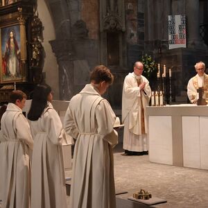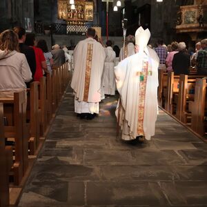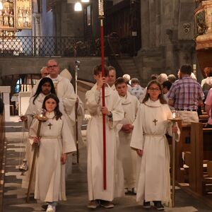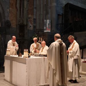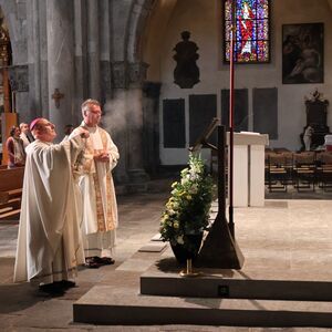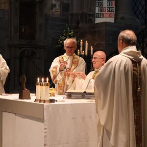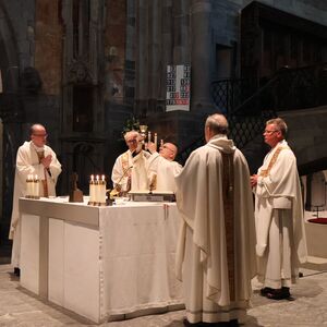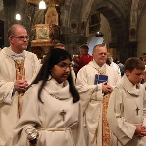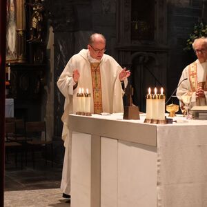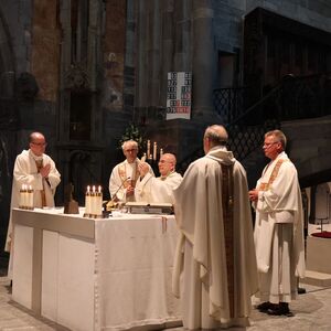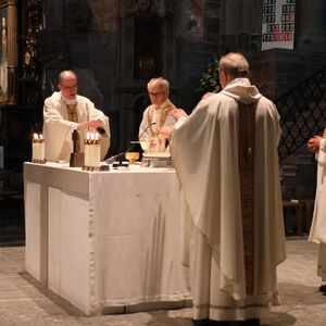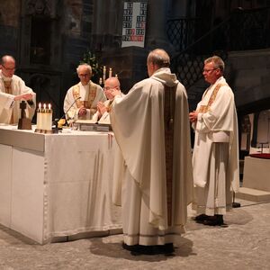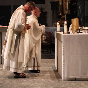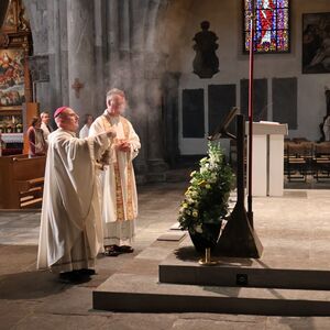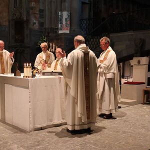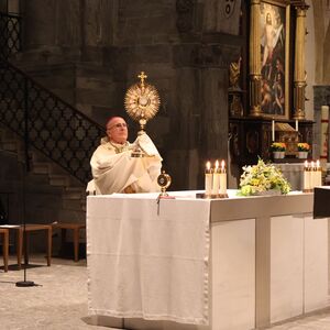 In der Eucharistie feiern die Katholiken die leibliche Gegenwart Jesu in Form von Brot und Wein. An Fronleichnam 2025 zum ersten Mal gemeinsam, alle drei Pfarreien von Chur in der Kathedrale. Bischof Joseph Maria hat sich sehr gefreut, mit allen zusammen den Gottesdienst zu feiern.